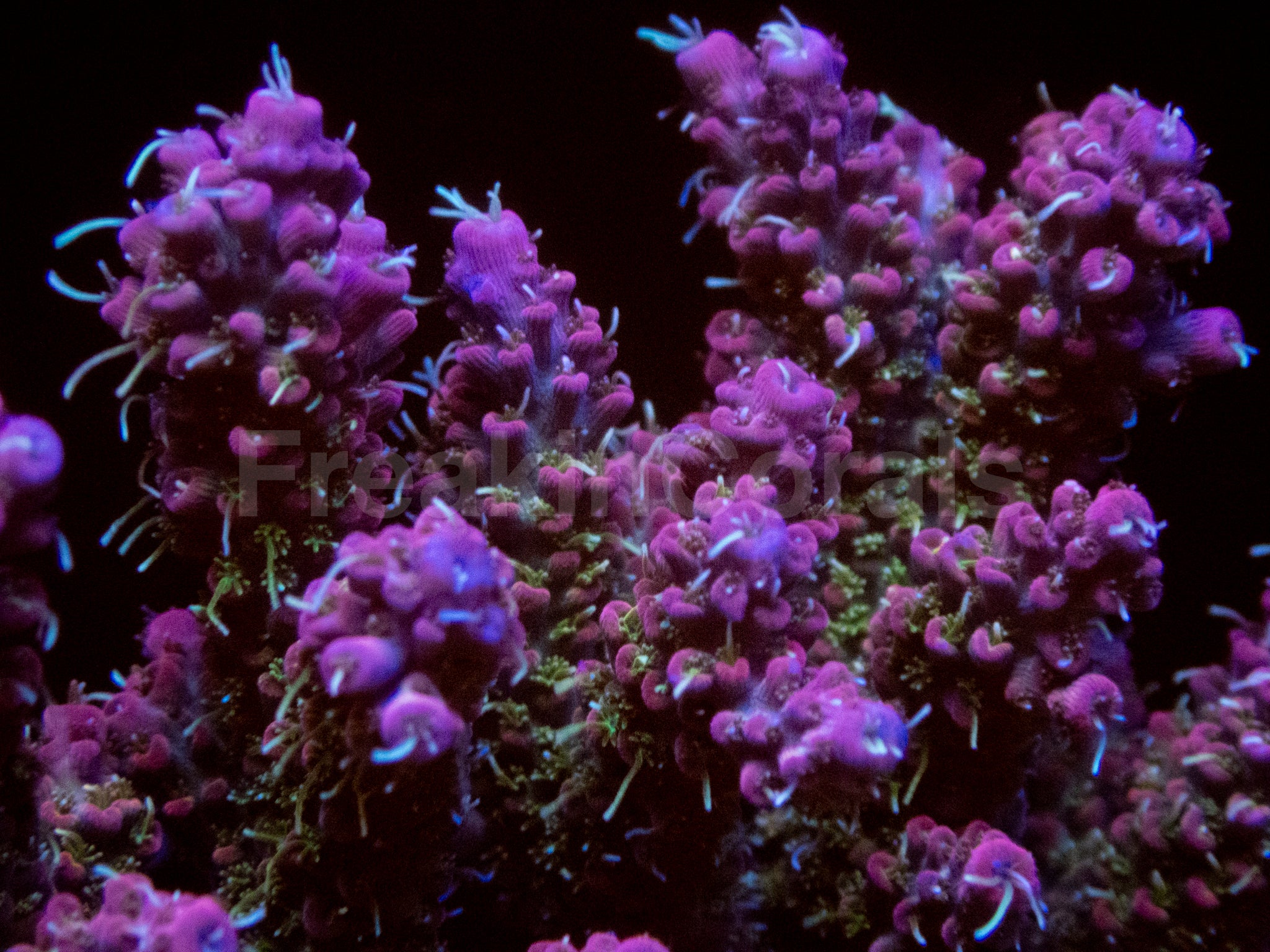 Fully photosynthetic, though it benefits from occasional fine coral foods (Reef Roids, coral powders, phytoplankton) once per week. Maintain stable alkalinity, calcium, and essential trace elements (iron, potassium, manganese) to protect its pink saturation and tip fluorescence. Avoid sudden nutrient drops β€” excessive low-nutrient conditions may lead to colour loss.