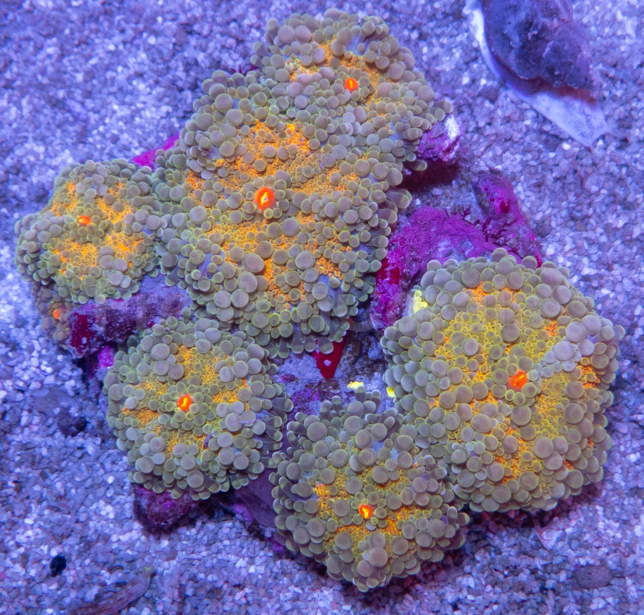 Its thick, fleshy disc, defined vesicles and clean colour separation make it ideal for high-end Yuma gardens, minimalist layouts, and contrast-focused reefs.