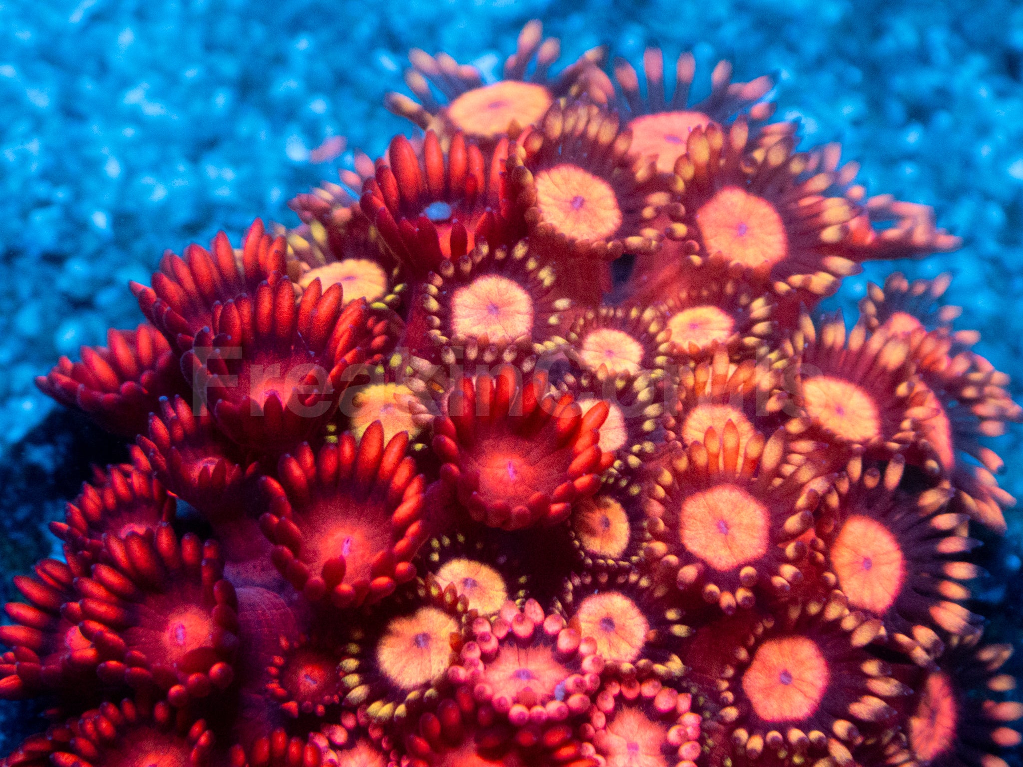 Mid to lower reef zones with gentle flow. Under actinic lighting, the tri-color red polyps create a stunning visual firestorm β perfect for collectors.
