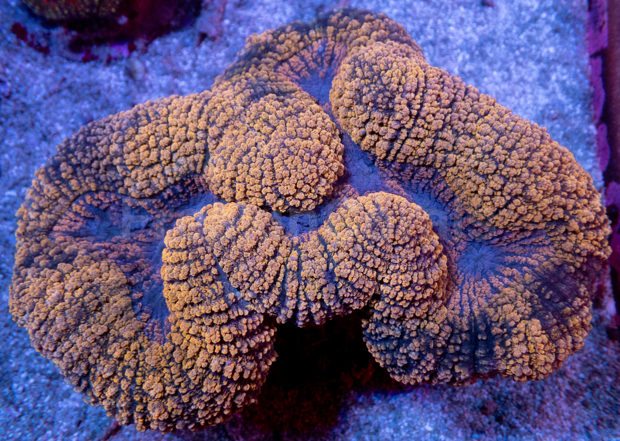 Colour Form: This XXL Symphyllia displays glowing molten orange-gold tentacles with a striking contrasting black mouth π β«. The vibrant colors and large polyp size create a majestic, eye-catching centerpiece.