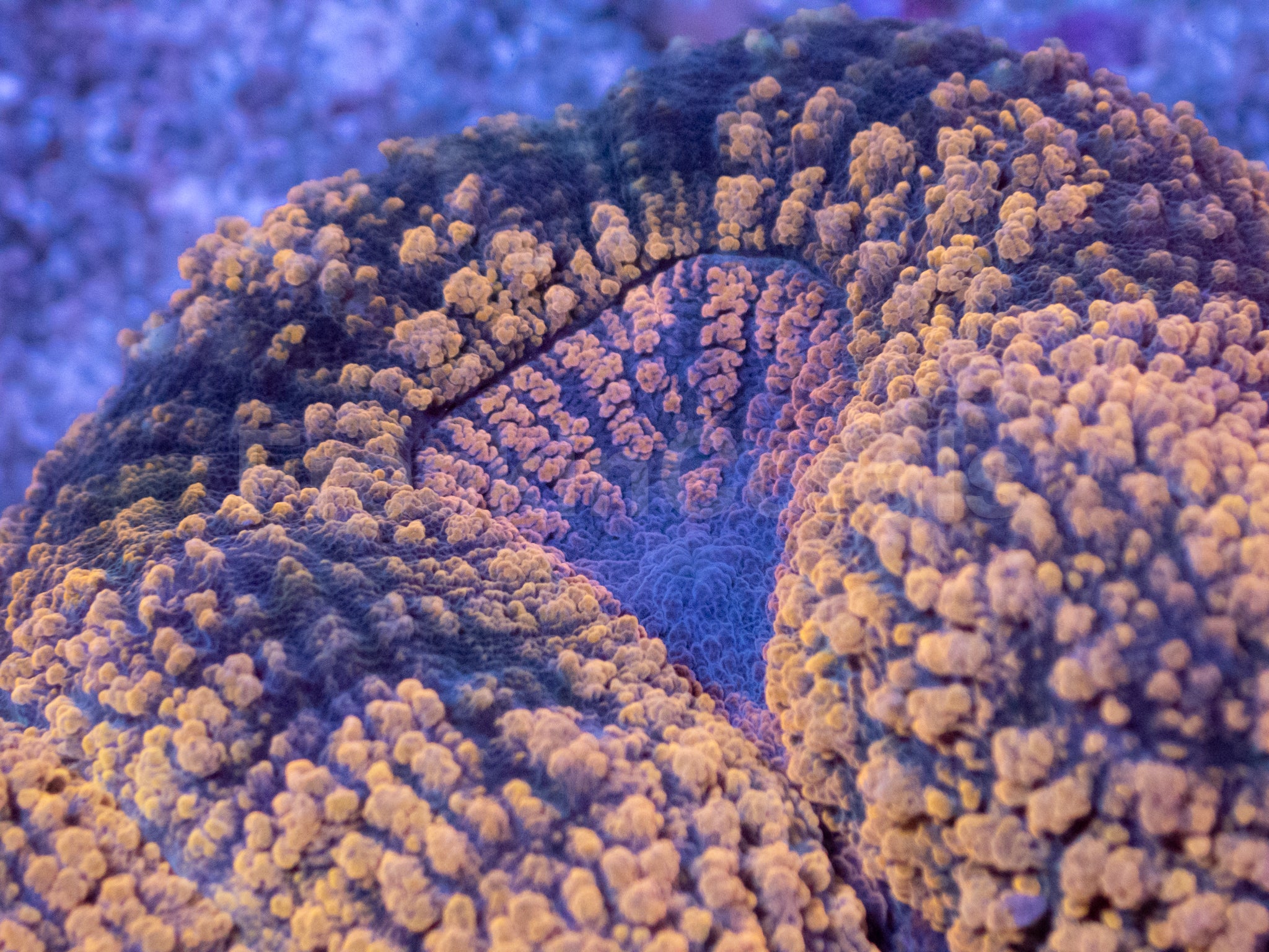 Symphyllia spp. (Vibrant Orange-Gold Tentacles with Black Mouth)