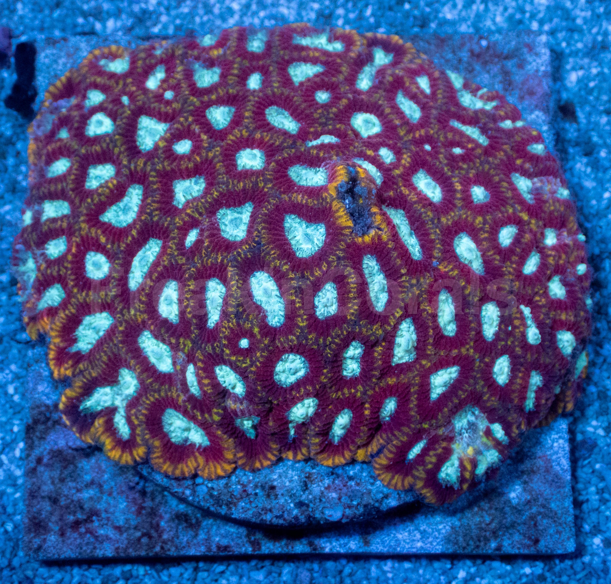 Place in moderate light and indirect flow. Provide space around the frag, as Favias may extend small sweepers at night. Expect the frag to encrust steadily and develop thick, colourful walls as it matures.