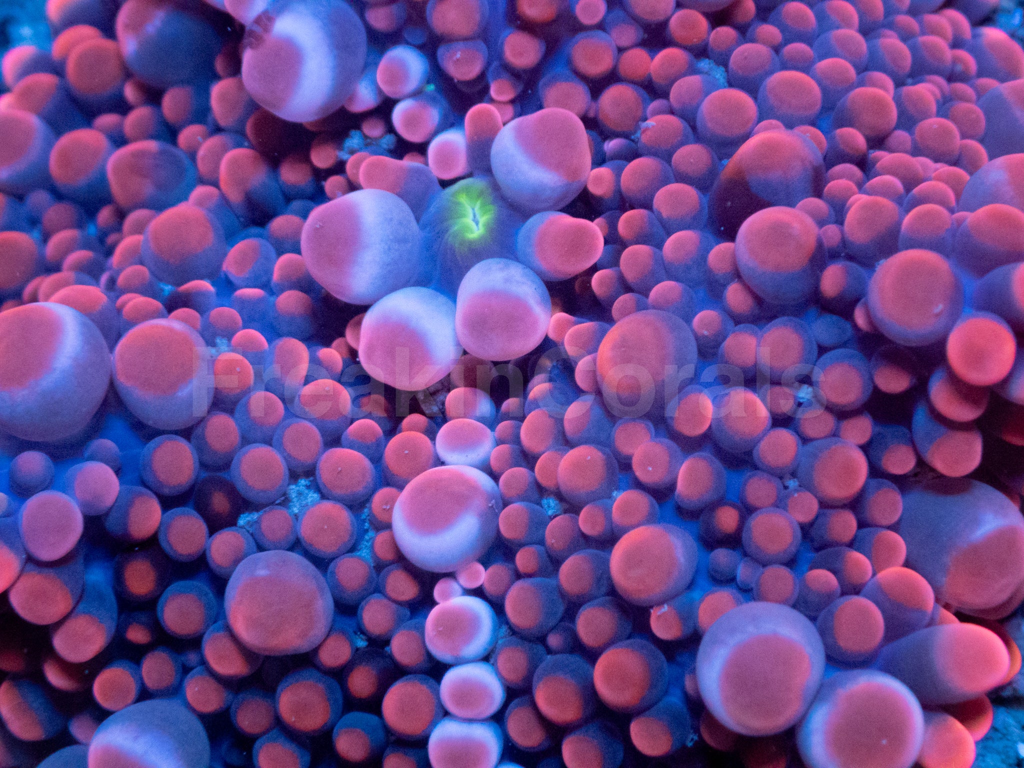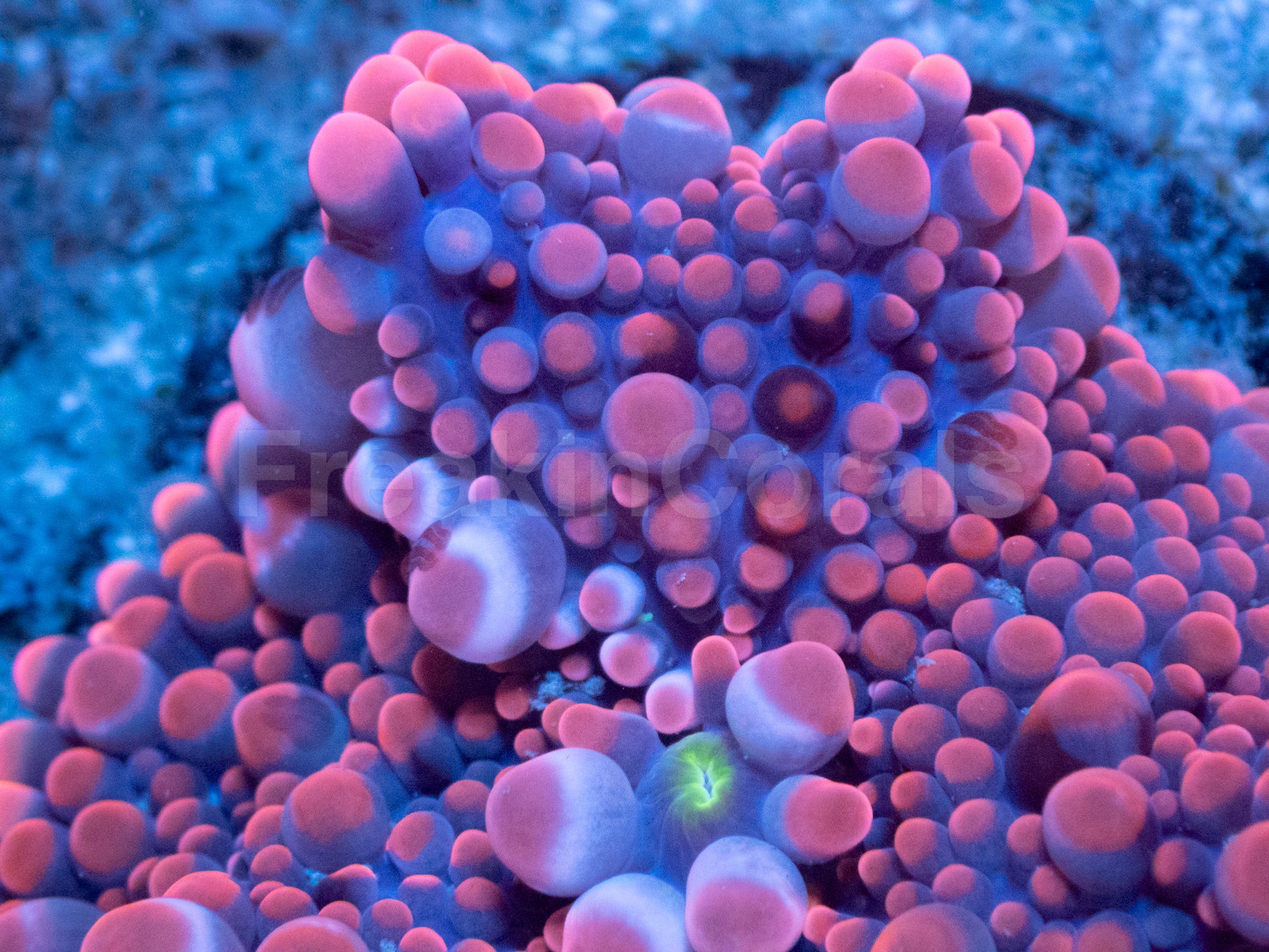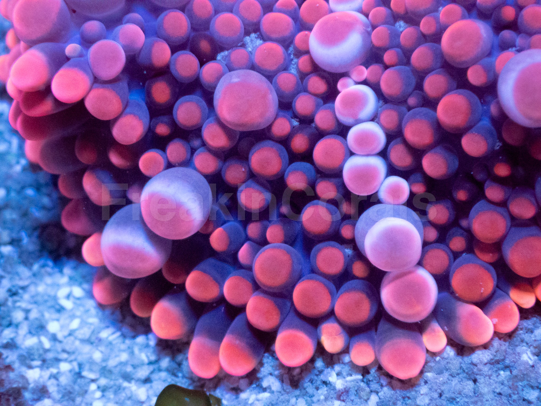 Mid reef zones with gentle, indirect flow. Under actinic lighting, the bubble polyps glow with rich strawberry tones, creating a jaw-dropping collector centerpiece.