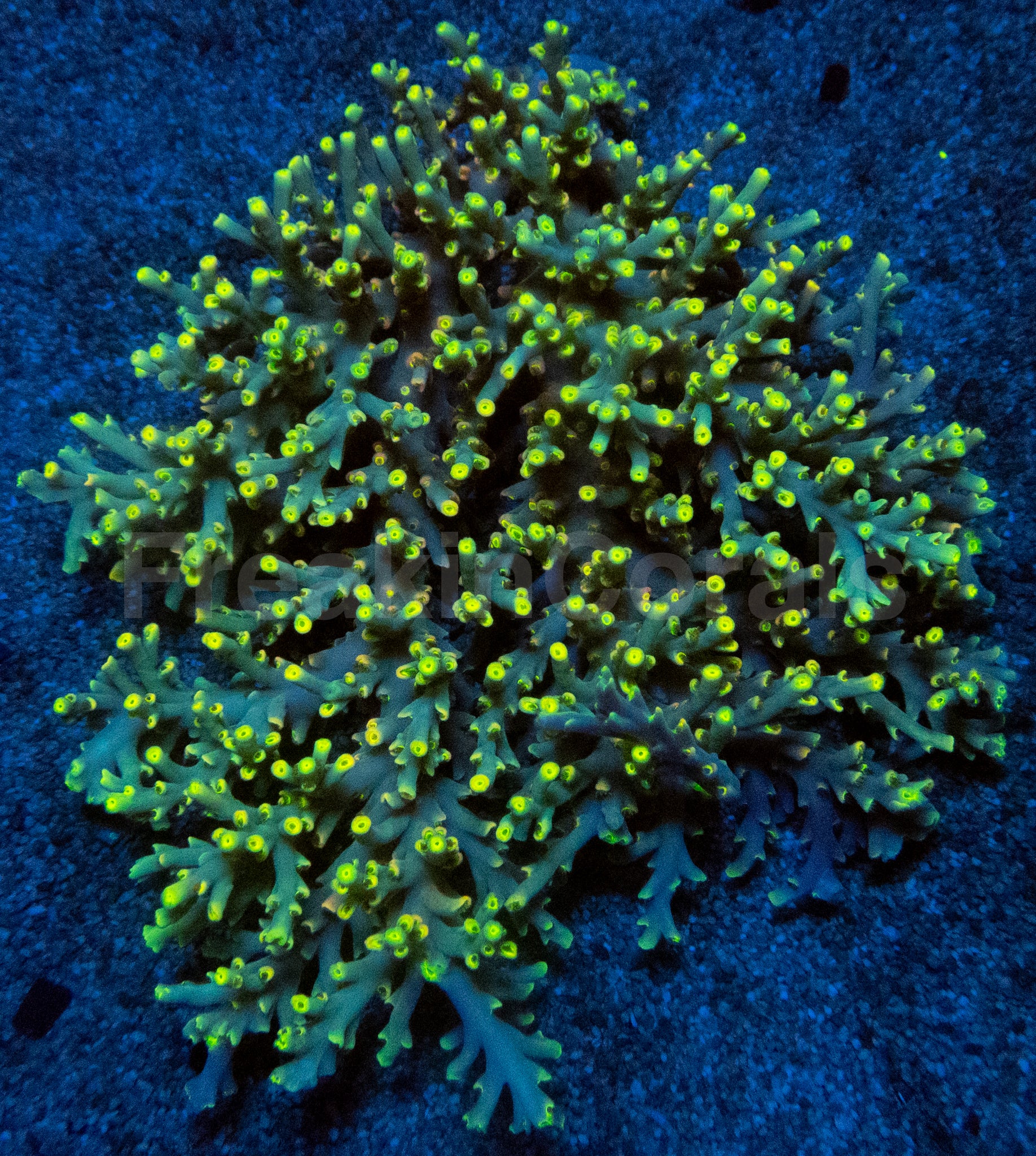 π₯. Its glowing axial tips and smooth plate-like branches make it one of the most visually spectacular Acropora morphs ever cultured.