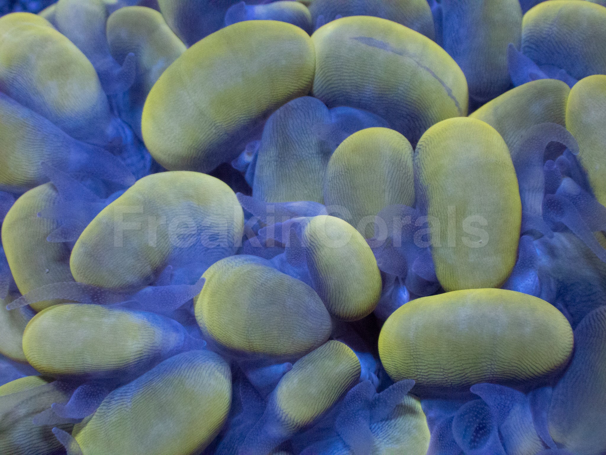 Colour Form: The “Golden Bubble” Plerogyra displays rich buttery yellow vesicles with soft pearl highlights. Under actinic lighting, the bubbles glow in warm golden neon, while under white light they reveal creamy champagne tones with subtle lemon undertones.