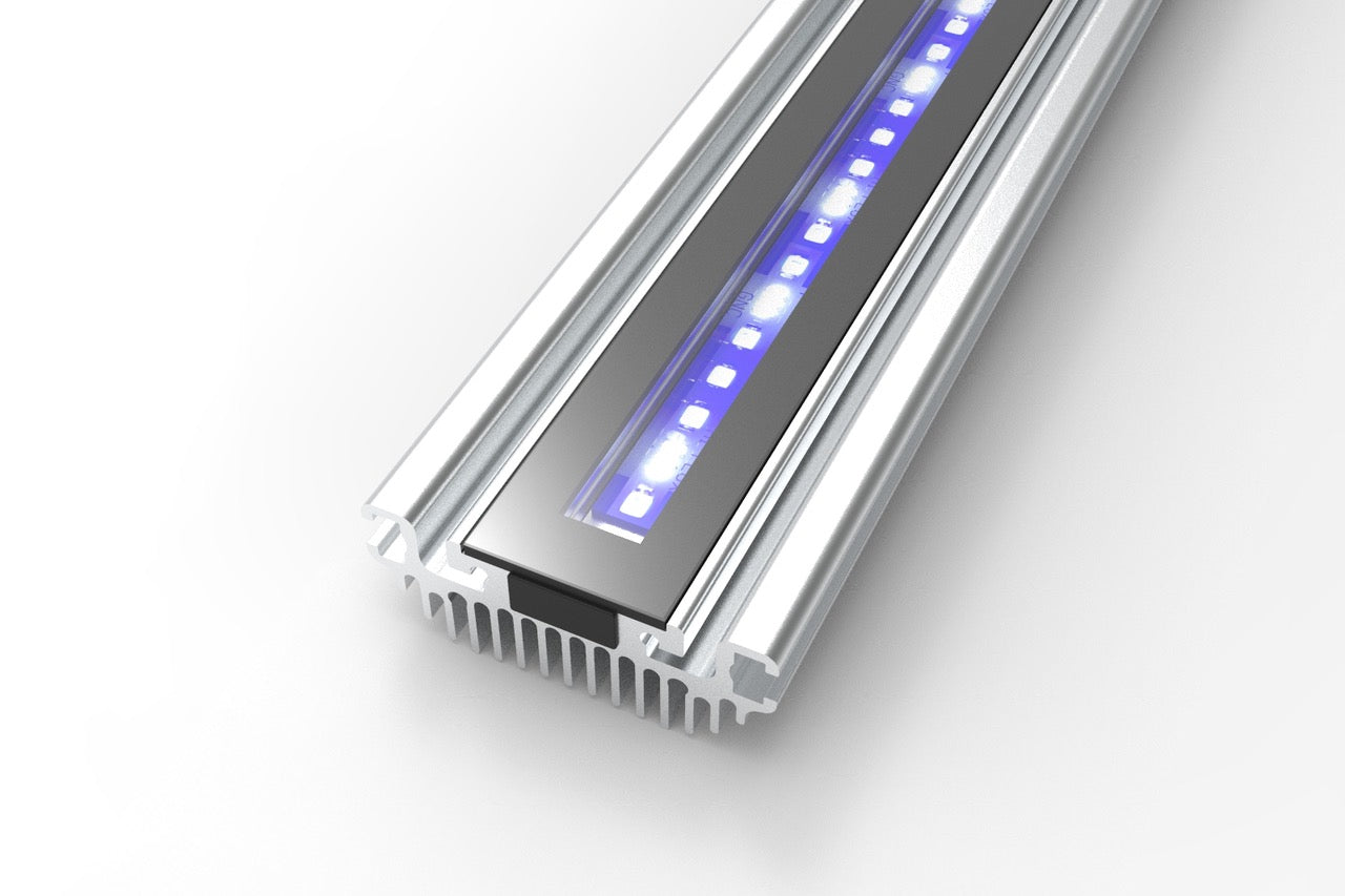 The SilverMoon is offered in four color spectrums, ReefBlu, Marine, Marine+, and Actinic. The deep blue for reef aquariums is generated by a mixture of Royal Deep Blue 450nM and Royal Blue 465nM LEDs that provide SilverMoon ReefBlu with the spectrum to keep SPS and LPS corals.