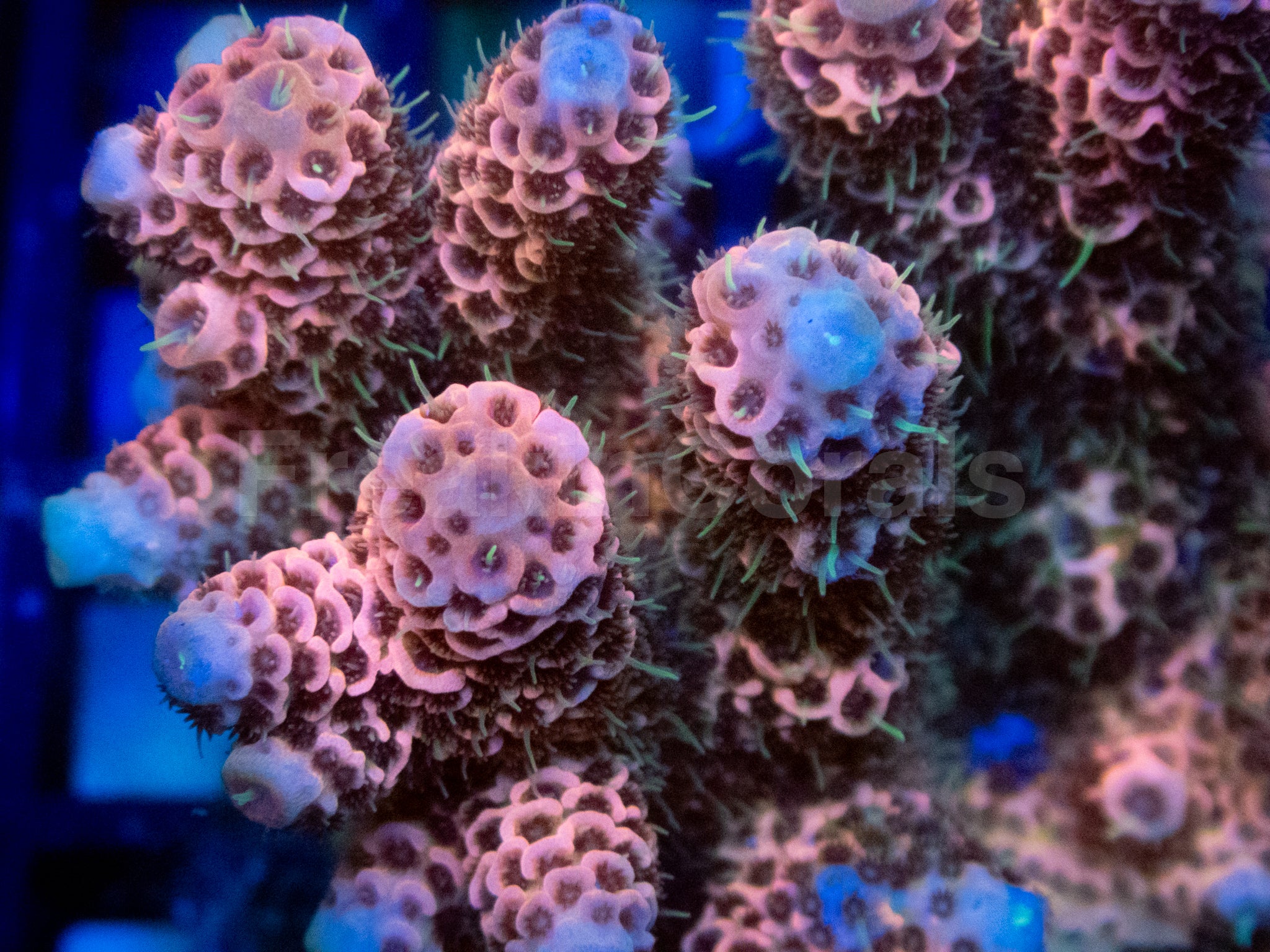 Grace and glow in one coral — where rose light meets green fire, bringing a serene yet radiant presence to any SPS reef.