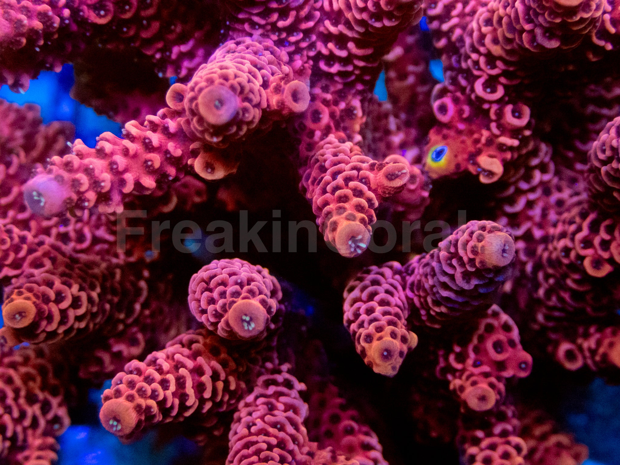 Ideal for experienced SPS keepers who appreciate saturated colour and refined structure, this coral develops stunning chromatic layering: hot-pink bases, glowing magenta branches, and luminous blush-pink tips. A genuine centrepiece for any high-energy SPS system.