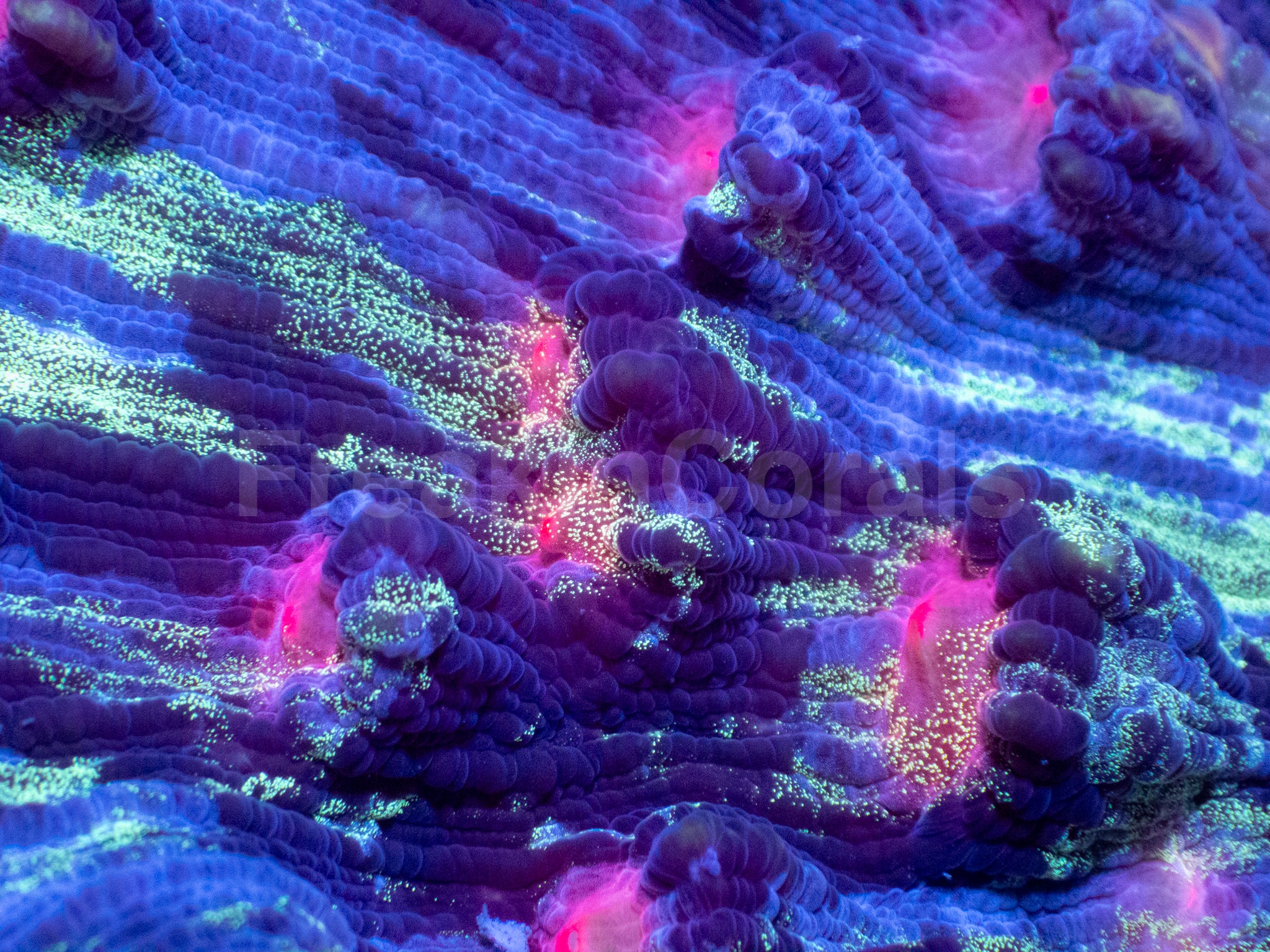 Mycedium spp. (Natural Grafted – Green, Purple & Black Stripes with Glitter – Collector Coral – One in a Million)